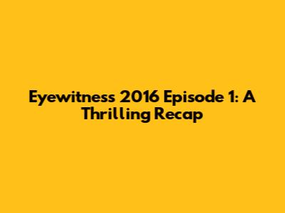 Eyewitness 2016 Episode 1: A Thrilling Recap