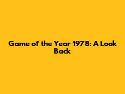 Game Of The Year 1978: A Look Back