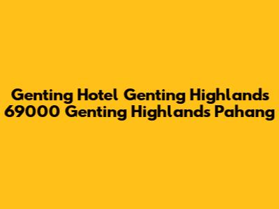 Hey guys! Planning a trip to Genting Highlands and looking for the perfect place to crash? Let’s dive into everything you need to know about Genting Hotel, located right in the heart of the action at 69000 Genting Highlands, Pahang. This hotel isn't just a place to sleep; it's an integral part of the Genting experience, offering comfort, convenience, and easy access to all the thrills and attractions this mountain resort has to offer.