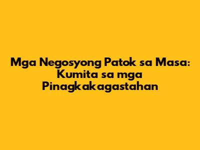 Guys, handa na ba kayong sumabak sa mundo ng negosyo? Kung ikaw ay naghahanap ng patok sa masa na negosyo, nasa tamang lugar ka! Sa artikulong ito, ating tatalakayin ang mga negosyong siguradong kikita dahil tugma sa pangangailangan at kagustuhan ng karamihan. Hindi natin kailangan ng malaking puhunan para magsimula. Sa katunayan, ang mga negosyong pag-uusapan natin ay 'yung mga karaniwan nang pinagkakagastahan ng mga tao araw-araw. Kaya, tara na't alamin natin ang mga negosyong patok sa masa na pwede mong subukan!