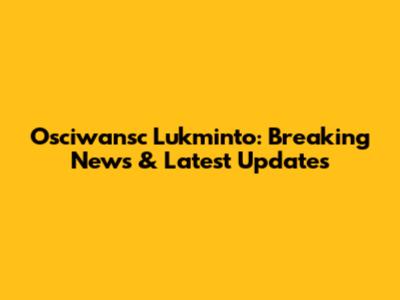Osciwansc Lukminto: Breaking News & Latest Updates
