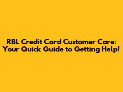 RBL Credit Card Customer Care: Get Help Now!